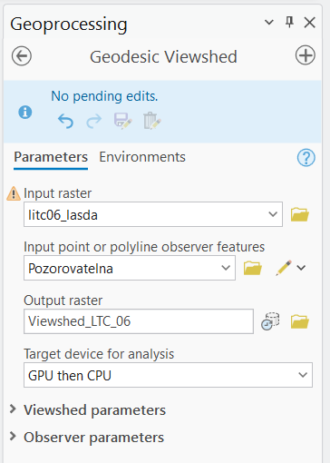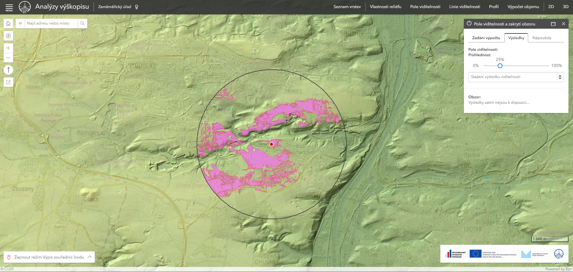 1. Viditelnostní analýza se provádí funkcí Geodesic Viewshed.
