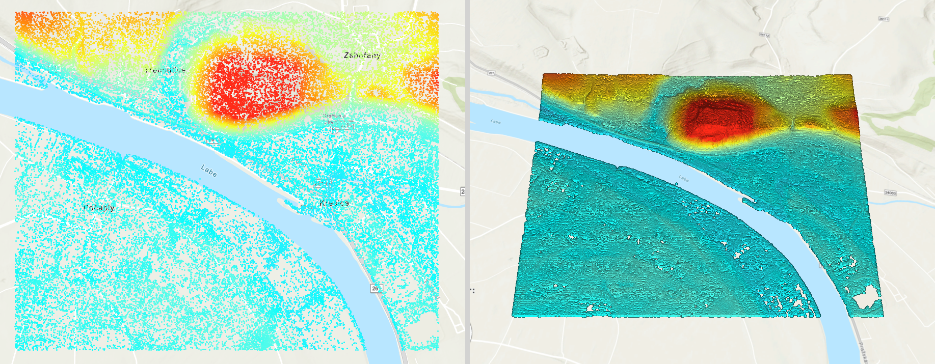 1. Data LiDARového skenování slouží jako podklad pro vytvoření digitálního modelu terénu. V ArcGISu Pro je možné převést LAS do rastru pomocí funkce LAS Dataset To Raster.