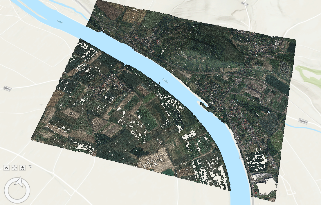 1. V některých případech je výhodné mračno bodů obarvit (pokud již texturu neobsahuje v základním nastavení). Stažený LAS z ČÚZK lze otexturovat pomocí ortofota, které se stáhne podobně jako laserová data z Geoprohlížeče ČÚZK. Důležité je stáhnout data se stejným kladem, což pro zmíněná data platí.