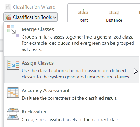 Klasifikační nástroje v ArcGIS Pro nalezneme pod záložkou Imagery → Classification Tools. Zde pak z nabídky zvolíme nástroj Classify.
