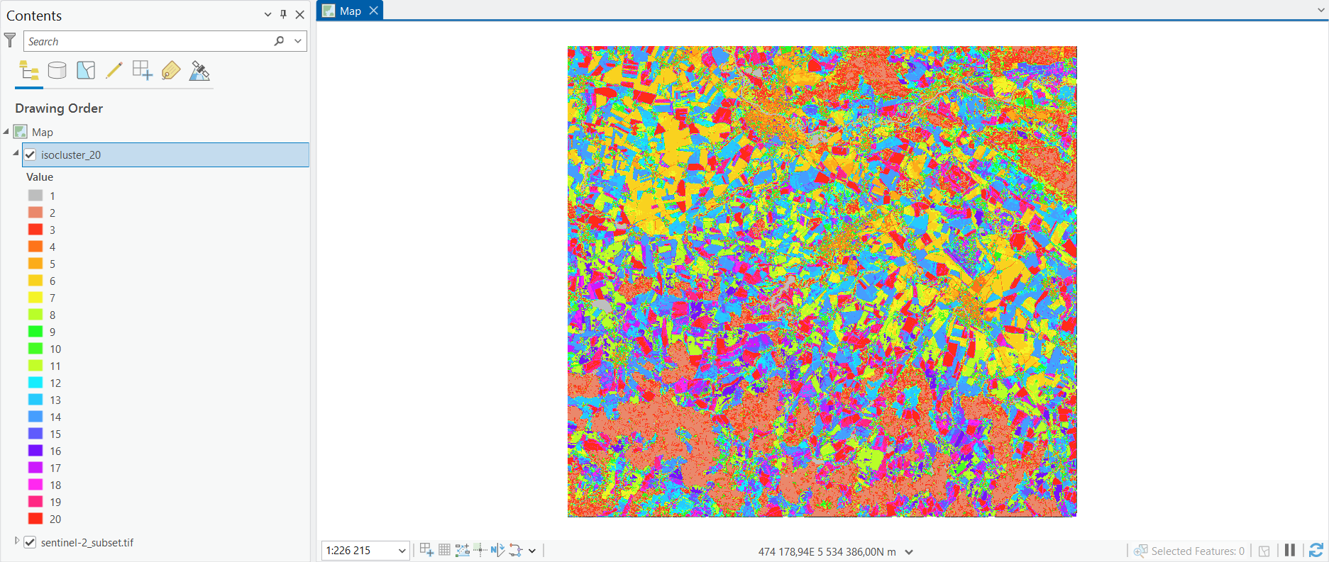 Algoritmů neřízené klasifikace je celá řada. SNAP nabízí dva algoritmy: K-Means Cluster Analysis a EM Cluster Analysis. V ArcGIS Pro pak nalezneme algoritmus ISO Cluster.