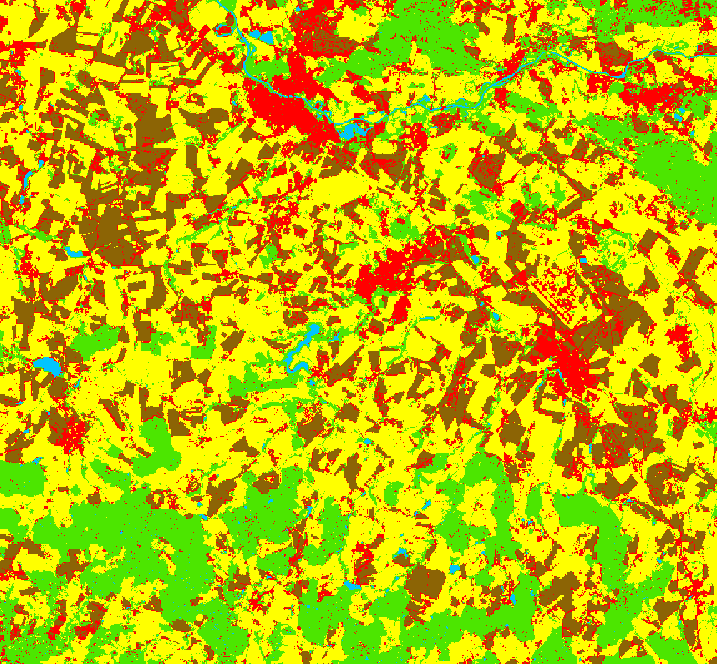 - Land use / land cover - Jedná se o výsledek klasifikace družicových obrazových dat. Konkrétně se jedná o tematické mapy popisující zemský povrch. Land use povrch popisuje z hlediska jeho využití lidmi. Land cover pak znázorňuje jednotlivé druhy povrchů (voda, holá půda, les atd.).