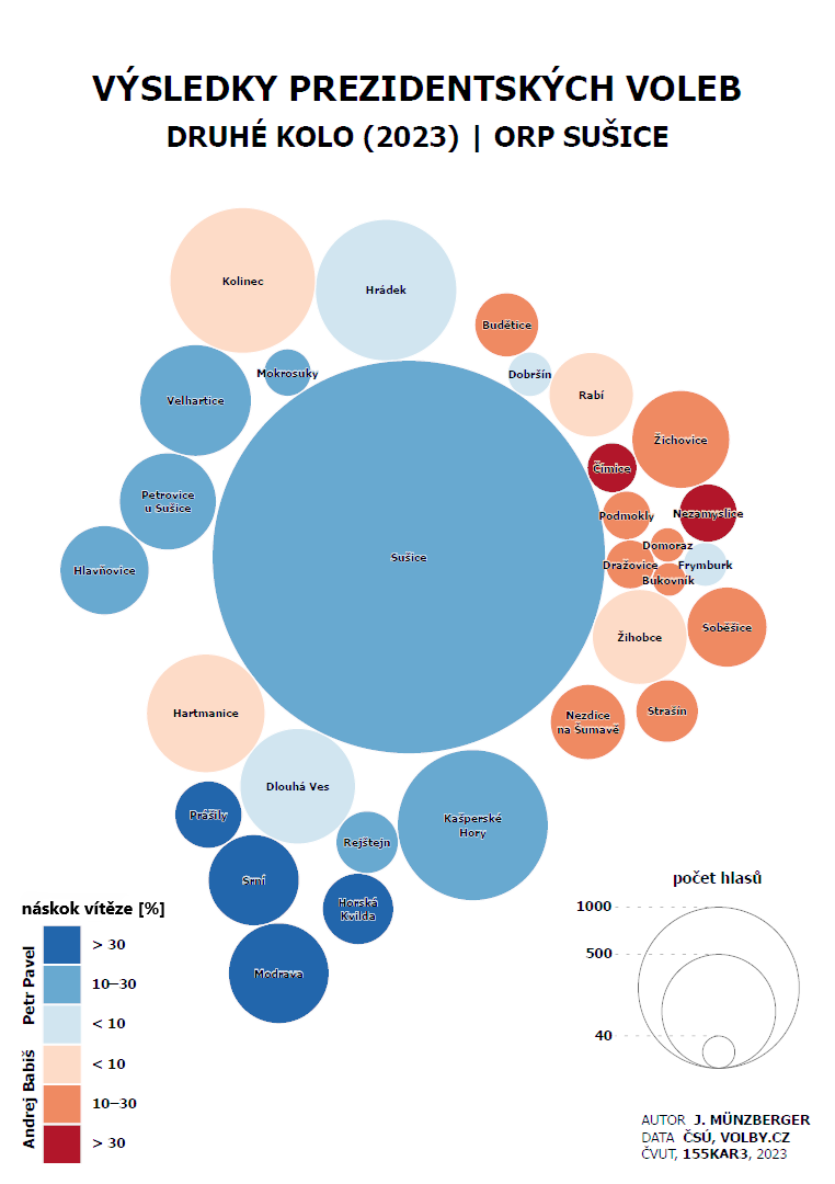 - výsledky prezidentských voleb z Veřejné databáze ČSÚ dle ORP (platné hlasy, druhé kolo)