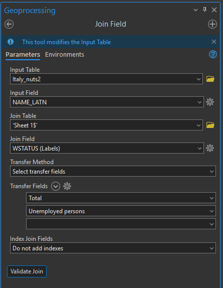 Z tabulky odstaníme v Excelu přebytečné řádky a přidáme ji do ArcGISu. Pomocí funkce Join Field ji připojíme k připraveným regionům dle obrázku níže. Regiony následně vyexportujeme do GeoJSONu funkcí Feature to JSON.