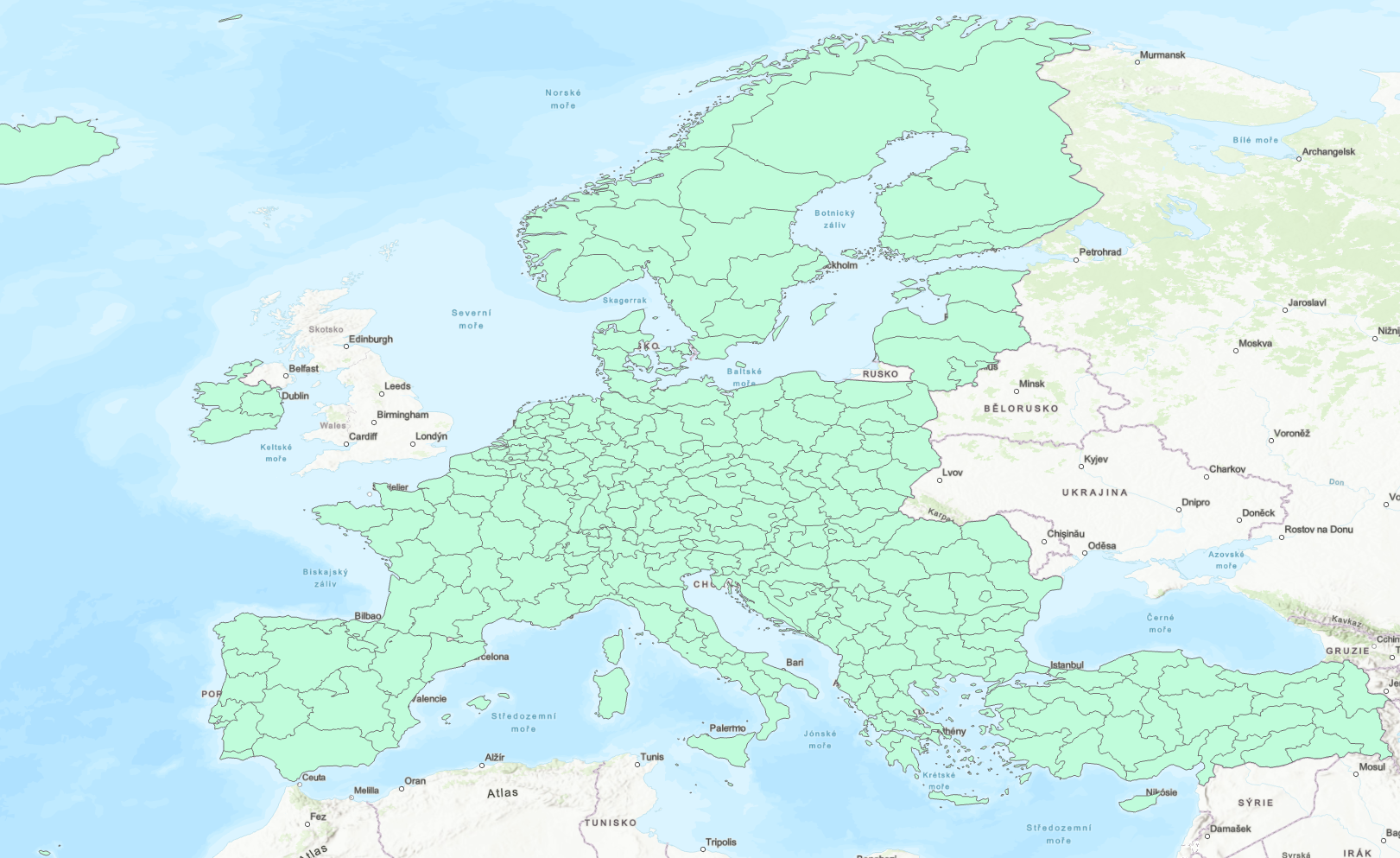 3) Zobrazení hranic regionů v mapě