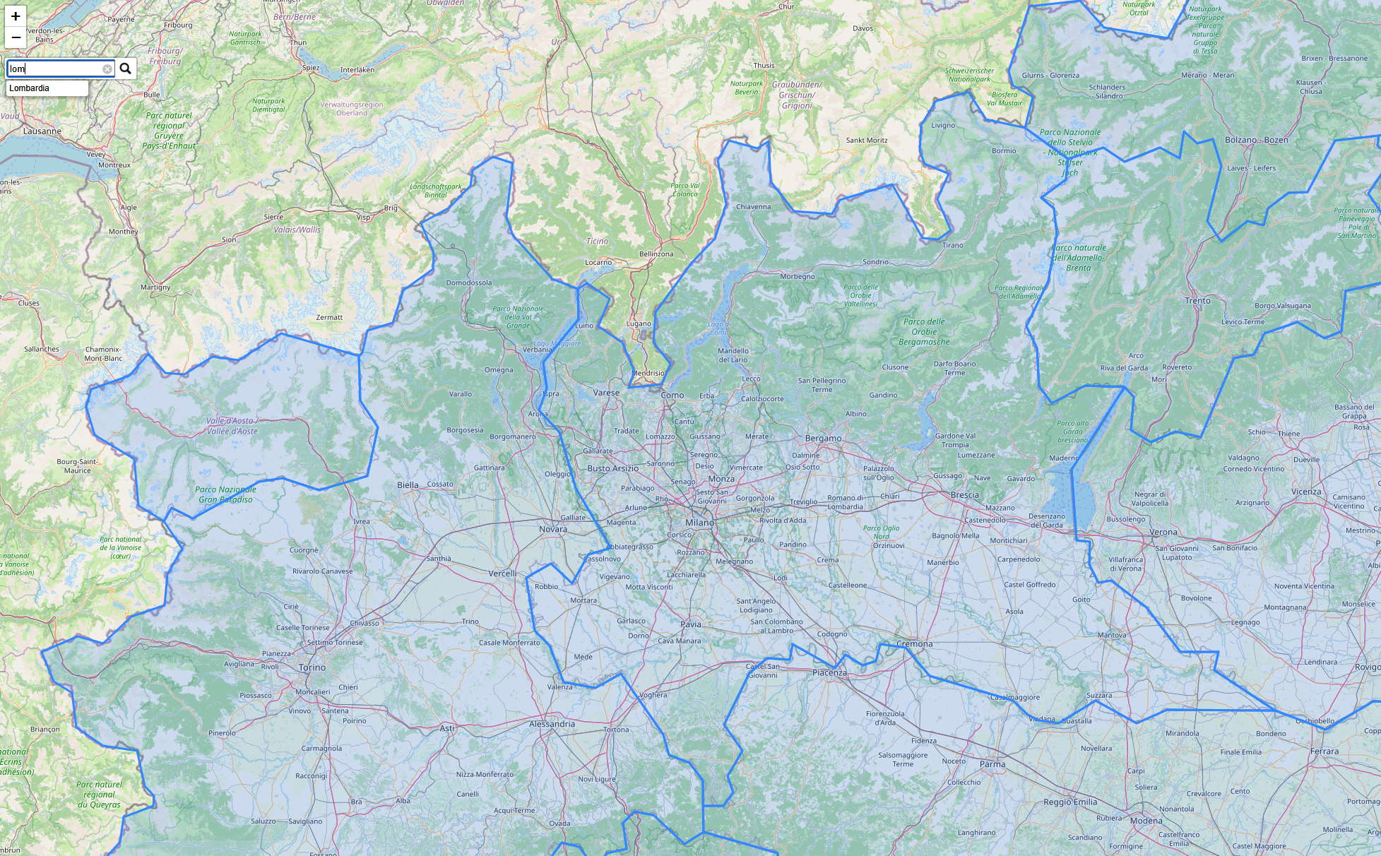 Jednou ze zbrazených vrstev budou regiony NUTS2 pro vybraný stát. Jedná se o rozdělení států na menší správní celky, které jsou vzájemně porovnatelné napříč členskými státy. NUTS2 jednotky mohou mít v různých státech však jiné významy. Například Česko se takto dělí na sdružení krajů (Jihozápad = Jihočeský + Plzeňský, Severozápad = Karlovarský + Ústecký atd.), ale pro větší země se zpravidla jedná o rozdělení na reálné správní obvody. Pro území Itálie se jedná o historické regiony.
