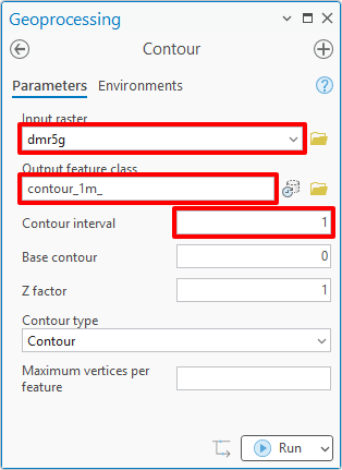 Vrstevnice jsou v podstatě jedním z možných způsobů modelování terénu. V GISu je můžeme získat např. konverzí z rastrového digitálního modelu terénu – nástrojem Contour. Parametry nástroje jsou vcelku intuitivní, nicméně vytvořené vrstevnice většinou nejsou vyhlazené, a tedy nijak zvlášť estetické.