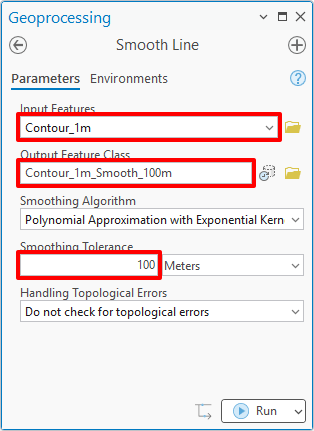 Vyhlazení je možné řešit ve dvou krocích – jednak samotným vyhlazením linií, k čemuž slouží nástroj Smooth Line (parametr Smoothing Tolerance je nutné vyzkoušet a postupně nalézt vhodnou hodnotu).