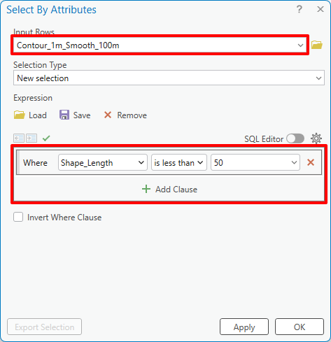 Protože CAD formáty nepodporují atributy, není možné při exportu převést úplně všechny informace. Nicméně ArcGIS Pro umožňuje do konverze zahrnout některé klíčové informace, jako např. název vrstvy, ve které bude prvek umístěn, nebo jeho barvu. Všechna klíčová pole lze získat nástrojem Add CAD Fields. Pro účely úlohy můžeme přidat textové pole Layer (stačí obyčejně přes atributovou tabulku) a to vyplnit podle třídění vrstevnic na hlavní (např. každá pátá) a vedlejší (ty ostatní). V CADu pak díky tomu půjdou vedlejší vrstevnice snadno skrýt.