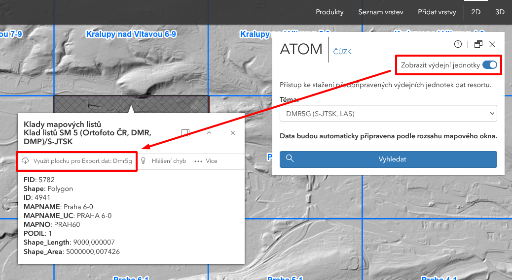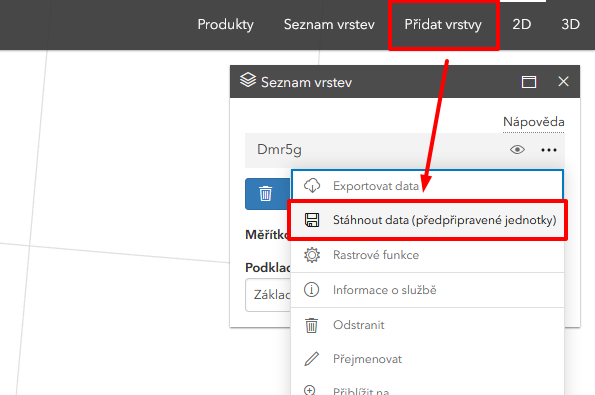 Produkt DMR5G je v půdovní podobě mračnem bodů leteckého laserového skenování. Tato data (po filtraci) je možné stáhnout přes aplikaci Geoprohlížeč.